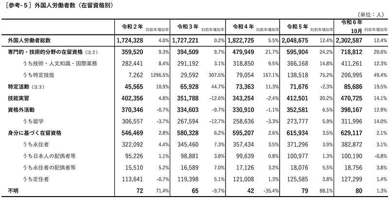 「登録支援機関は儲かる」という背景には外国人労働者の需要の高まりがあり、実際に特定技能外国人材は2023年(令和5年)と2024年(令和6年)を比較すると49.4%も増えているのは事実です。